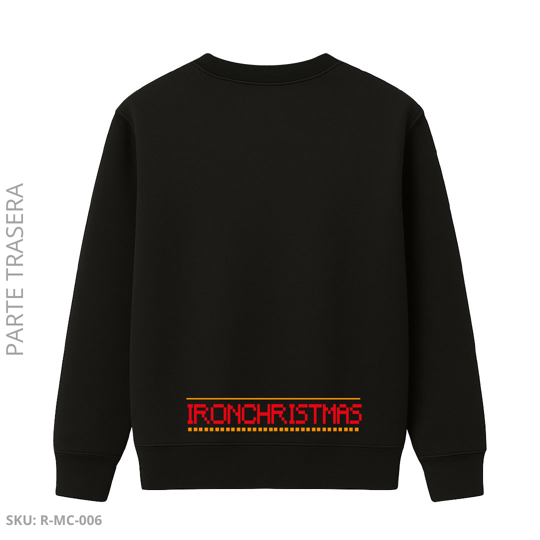 Buzo navideño unisex con diseño estilo pixel art inspirado en Iron Man. En el frente destaca la icónica máscara del héroe rodeada de motivos festivos y la frase IRONCHRISTMAS. Su combinación en tonos rojo, amarillo y blanco crea un look moderno, temático y perfecto para la temporada. Ideal para fans que quieran celebrar la Navidad con un toque de Marv